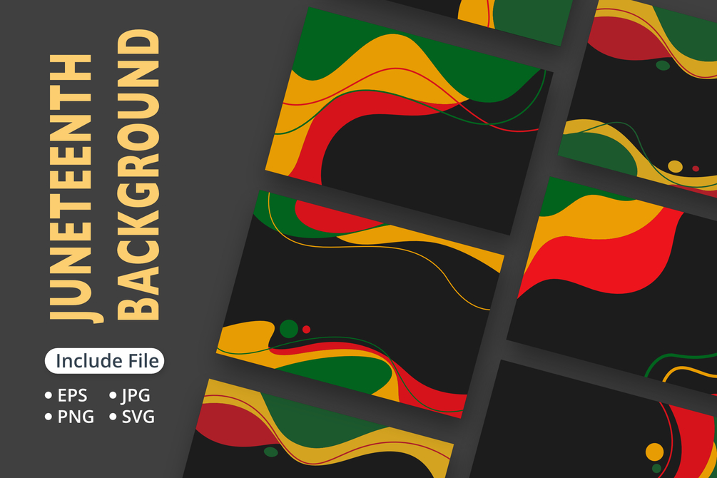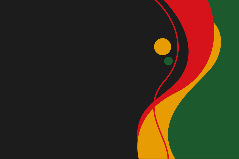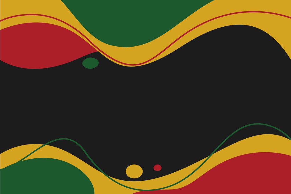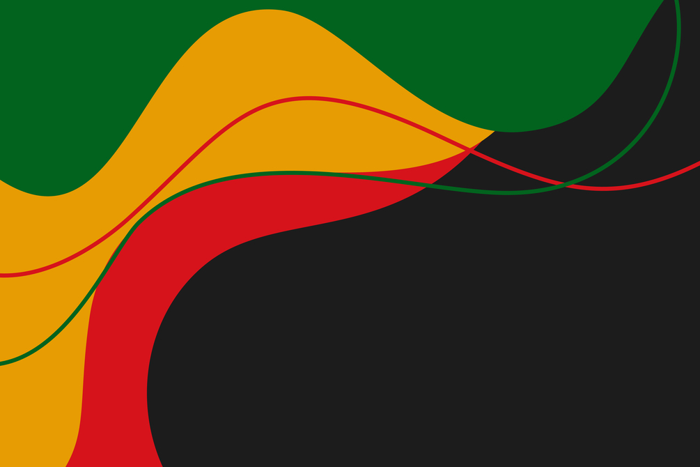 Juneteenth abstract background. Bold red, green, and yellow curves on black. Perfect for social media, presentations, and event flyers. Celebratory, powerful atmosphere for Juneteenth